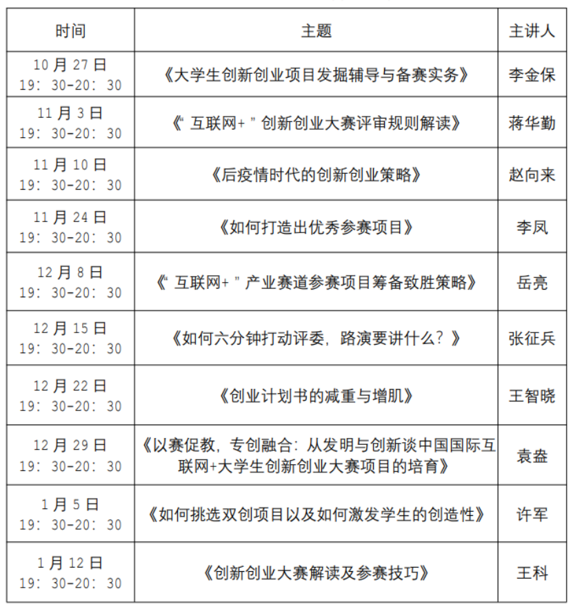 邀请具有丰富经验的创新创业教育专家及“互联网+”大创赛资深评委,剖析典型案例、分享双创经验、解读赛事规则,通过培训促进公司创新创业教育水平及参赛项目质量、数量整体提升。